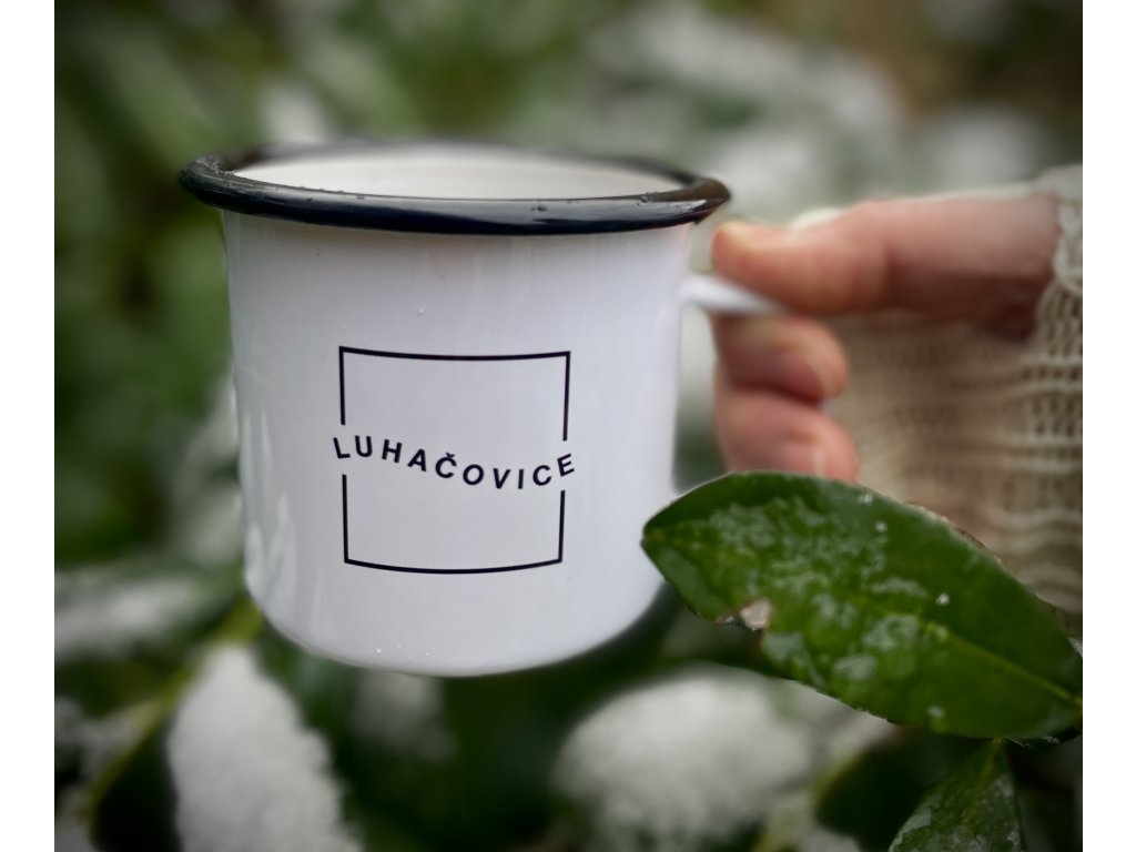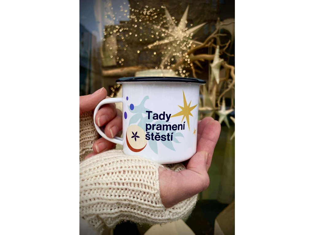 Bílý plecháček s černým okrajem 330ml v identitě města